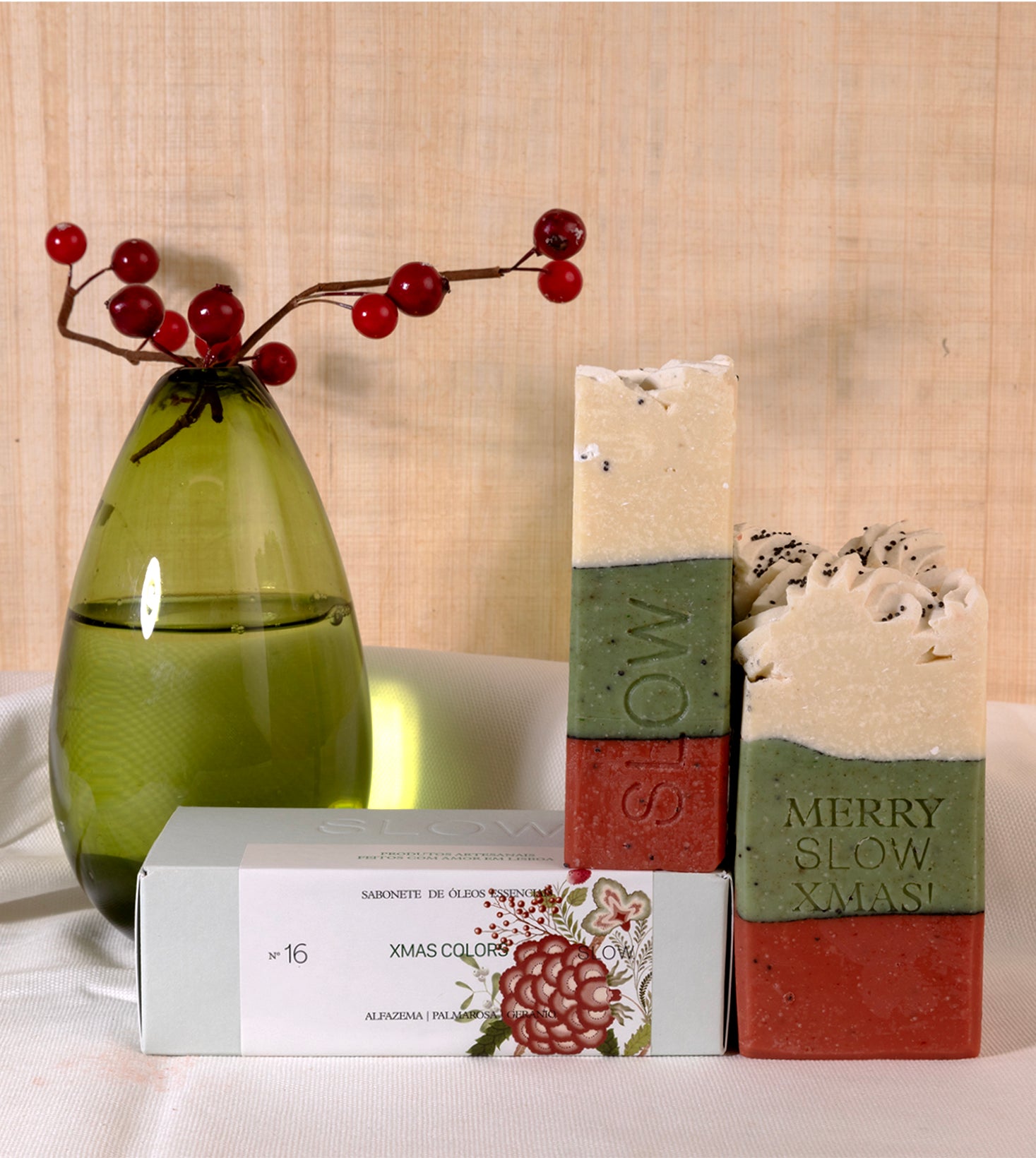 A edição especial de Natal SLOW já se tornou numa tradição ! Todos os anos, lançamos dois sabonetes que evocam o espirito natalício, tanto nas suas cores como nos seus aromas!