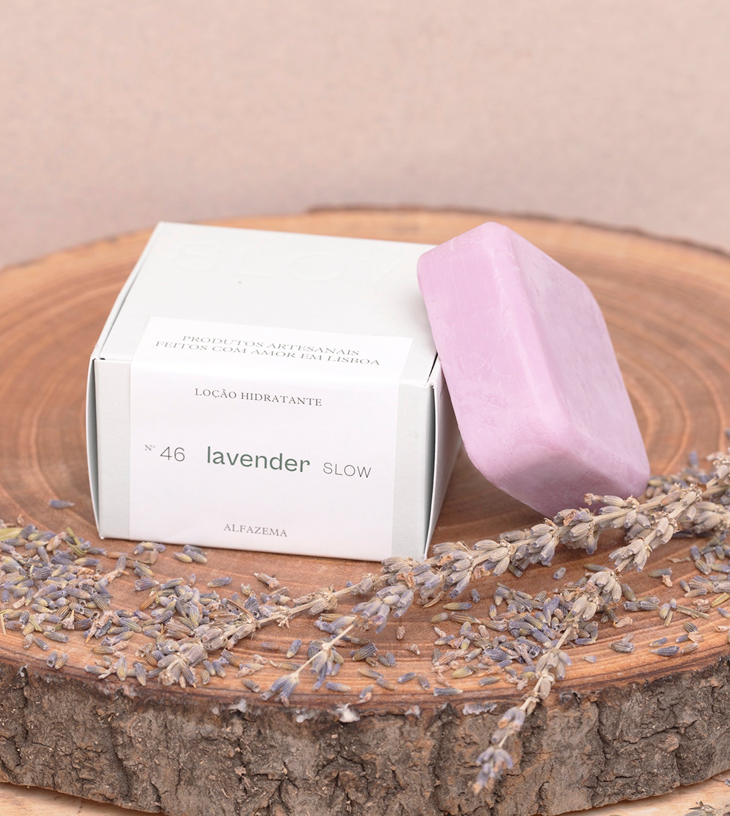 A nossa loção hidratante sólida de alfazema promove uma experiência luxuosa e hidratante para a sua pele. Mergulhe na essência calmante da lavanda enquanto desfruta dos benefícios nutritivos do óleo de coco e do óleo de rosa mosqueta. Esta formulação criada para fornecer uma hidratação intensa, deixando a pele aveludada, macia e levemente perfumada.