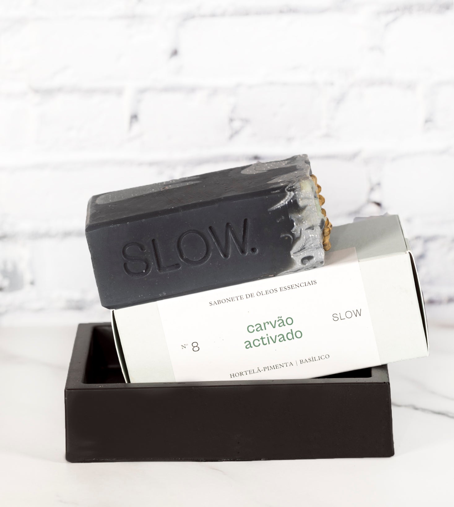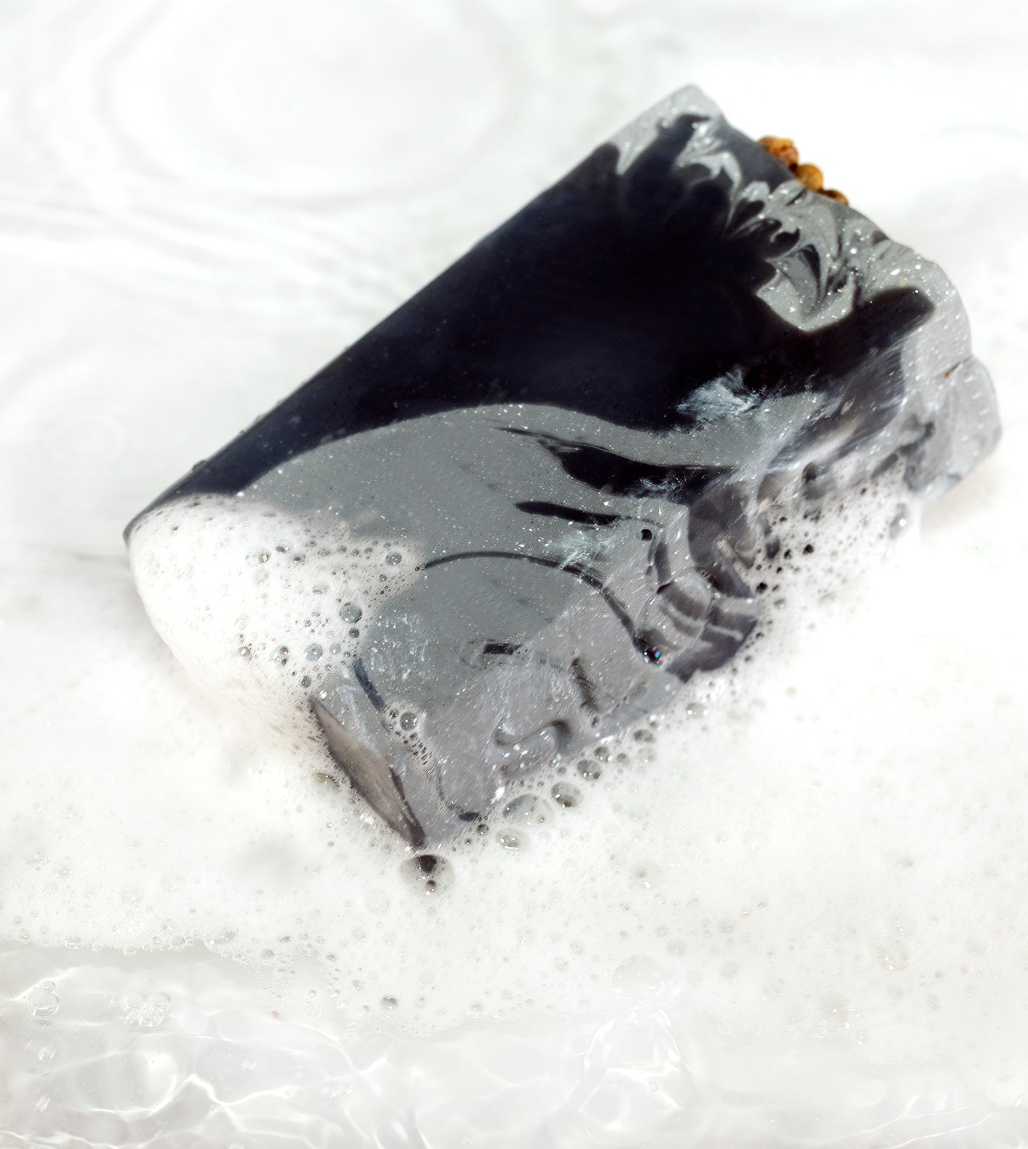 O carvão ativado tem propriedades únicas, sendo amplamente utilizado em produtos cosméticos. Devido à sua capacidade de se misturar com outras substâncias e de a segurar como um íman, é perfeito para uma limpeza profunda. Pode ser usado em todos os tipos de pele, beneficiando sobretudo as peles oleosas e acneicas. Não é uma sabonete especialmente hidrantante.