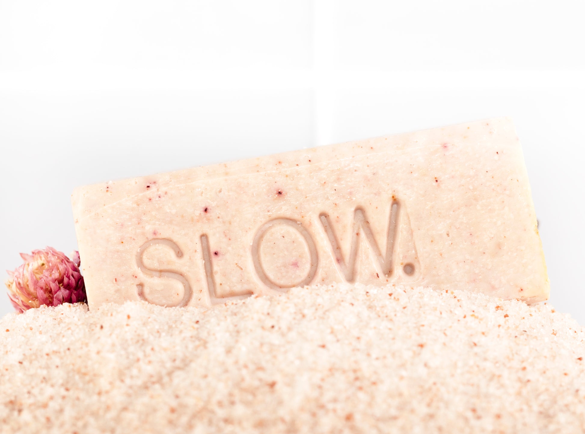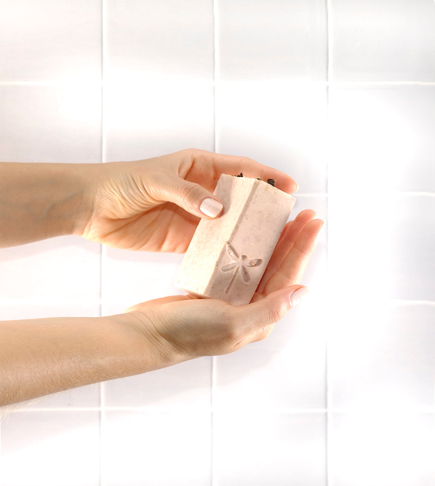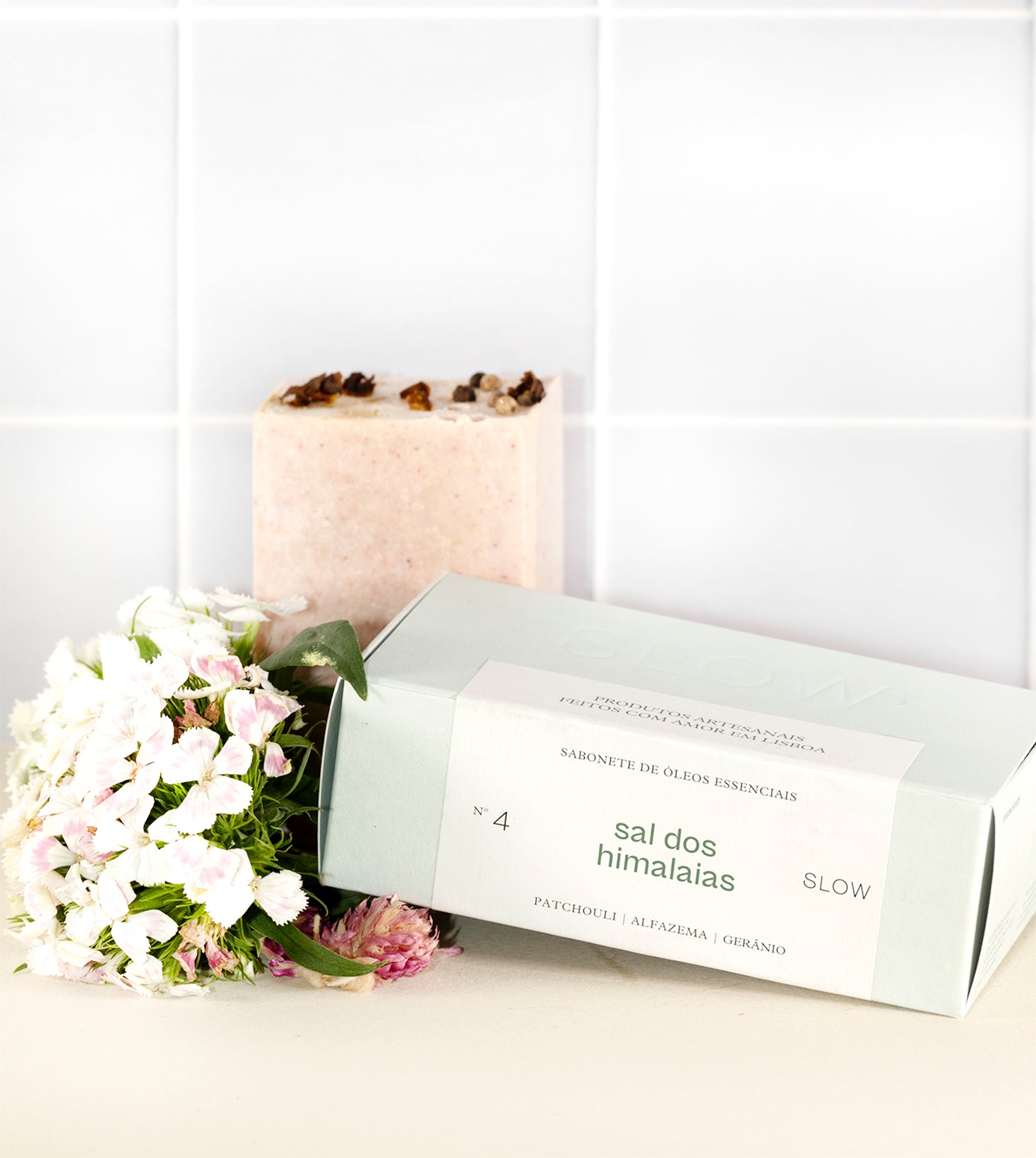 A adição de sal rosa dos Himalaias vem conferir a este sabonete, uma acção levemente esfoliante.
