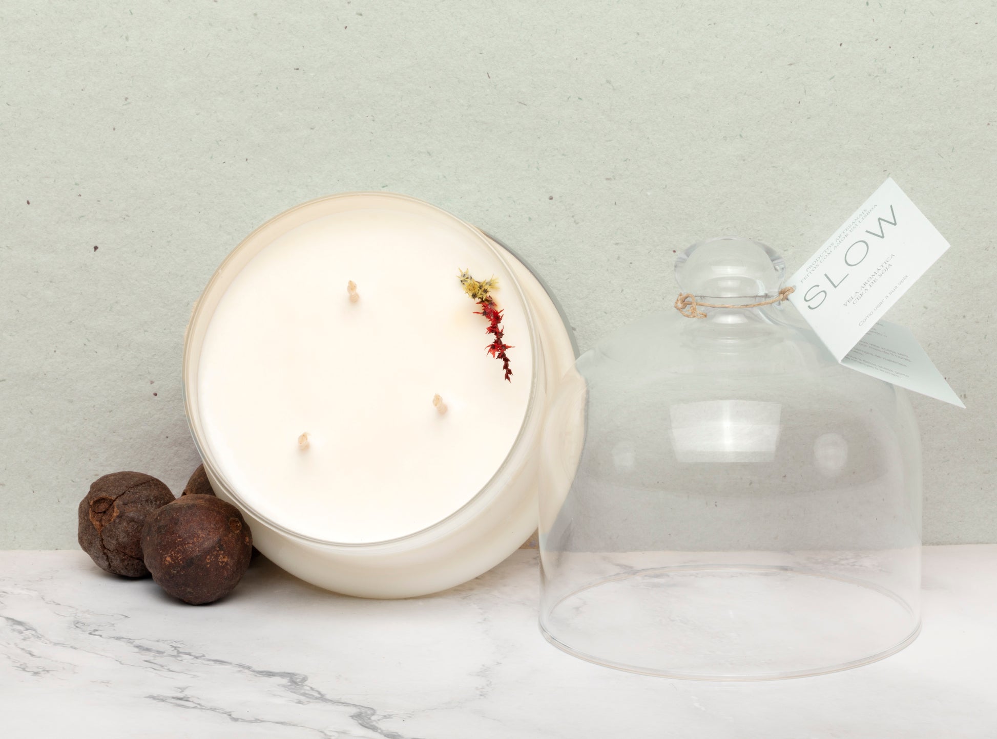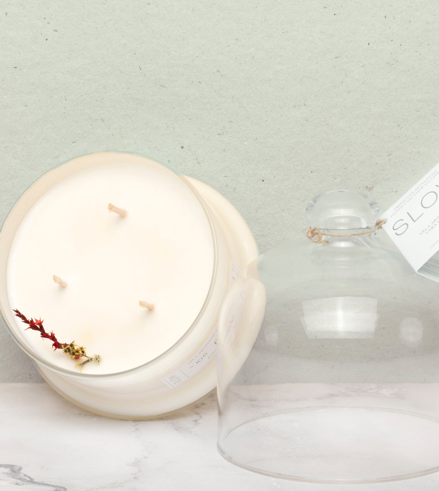 Vela artesanal e feita à mão, feita com cera de soja natural e certificada. O aroma é dado por óleos perfumados limpos, também certificados pela IFRA. As nossas misturas de velas são todas feitas de acordo com o mais recente regulamento europeu, e estão todas registadas na entidade nacional de emergência, o CIAV - Centro de Informação Antivenenos.