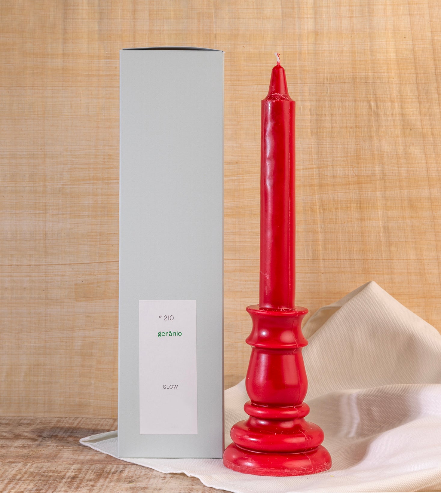 Vela decorativa em forma de castiçal romântico, aromatizada com óleo essencial de Bergamota.