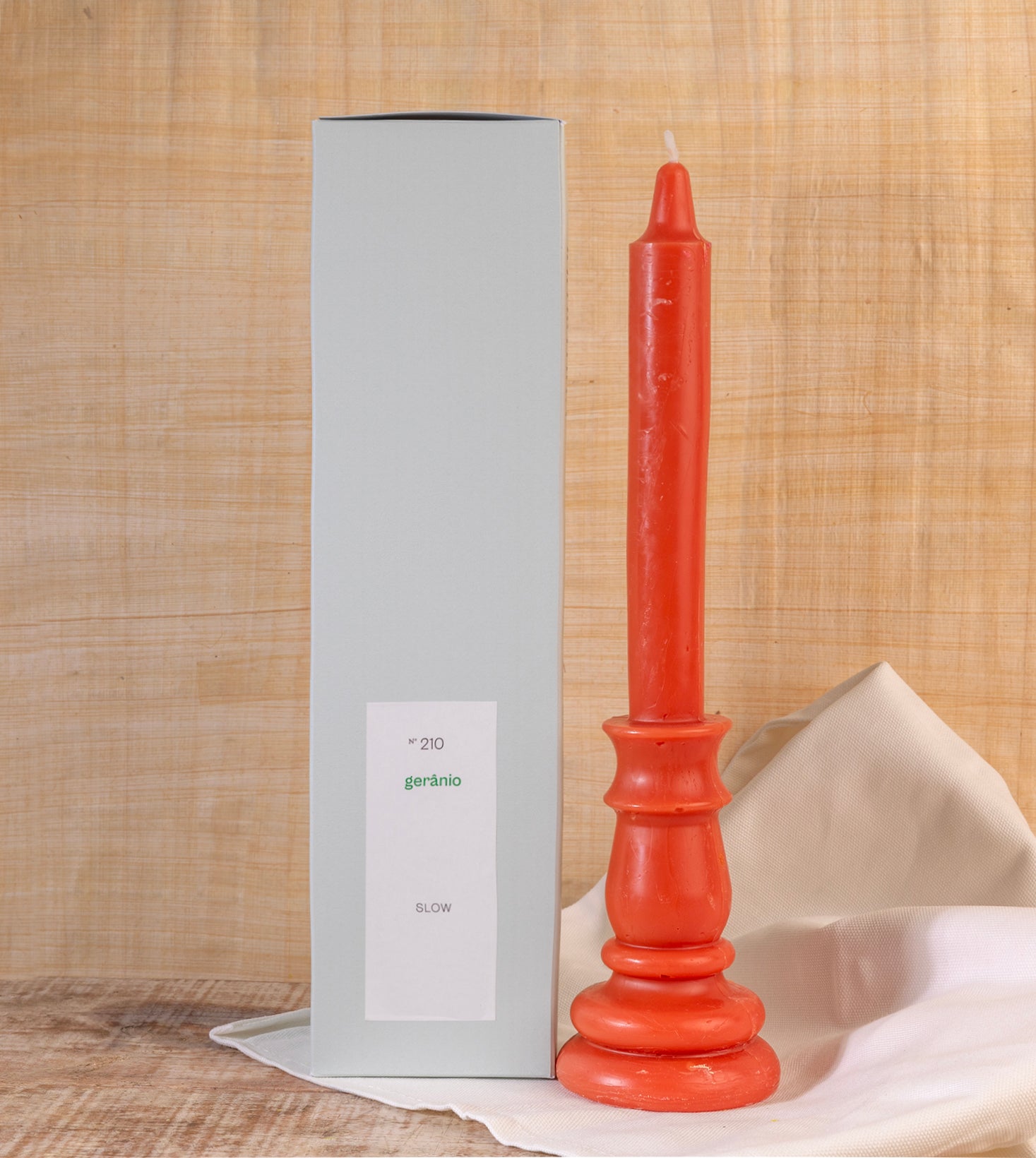 Vela decorativa em forma de castiçal romântico, aromatizada com óleo essencial de Bergamota.
