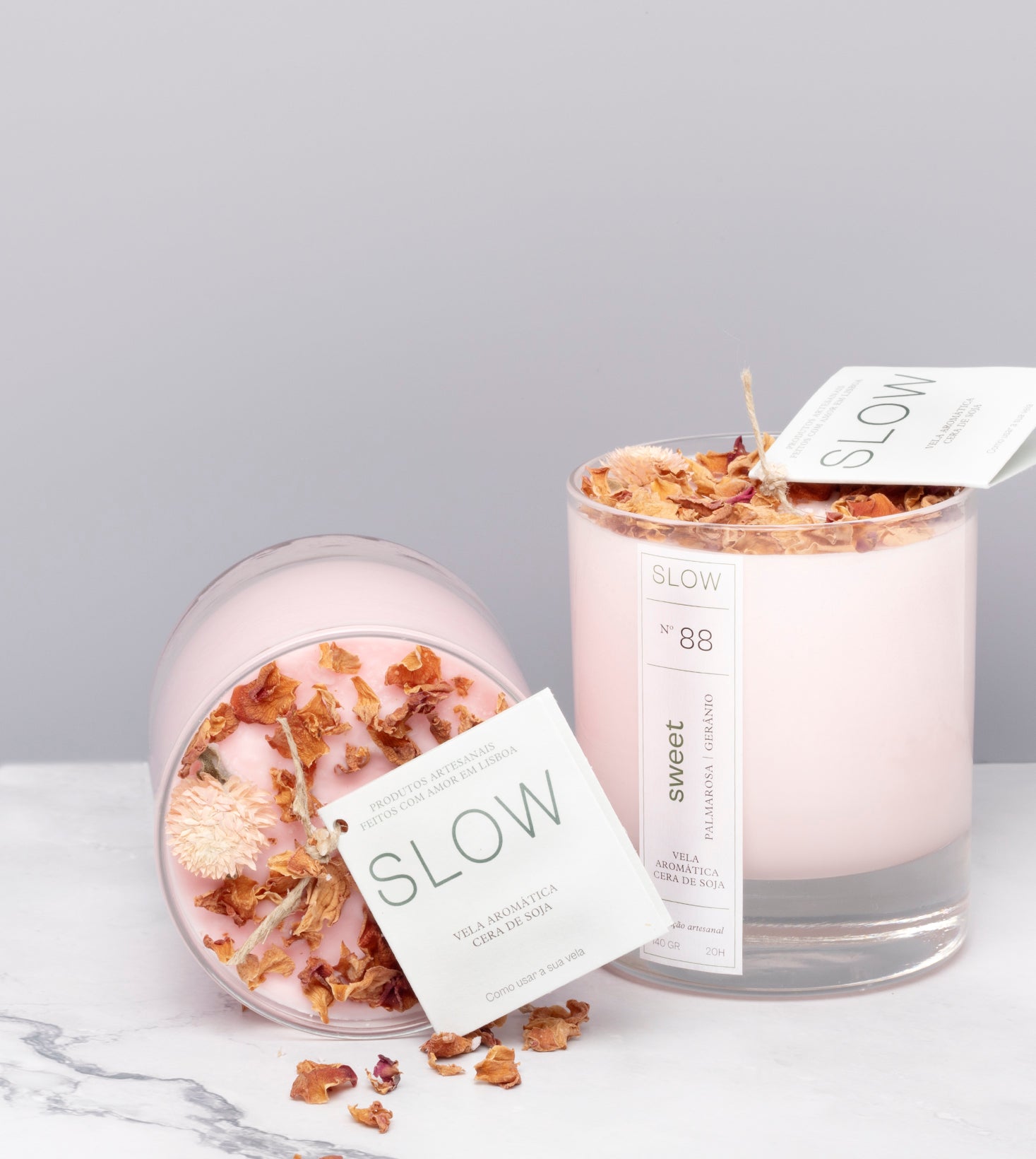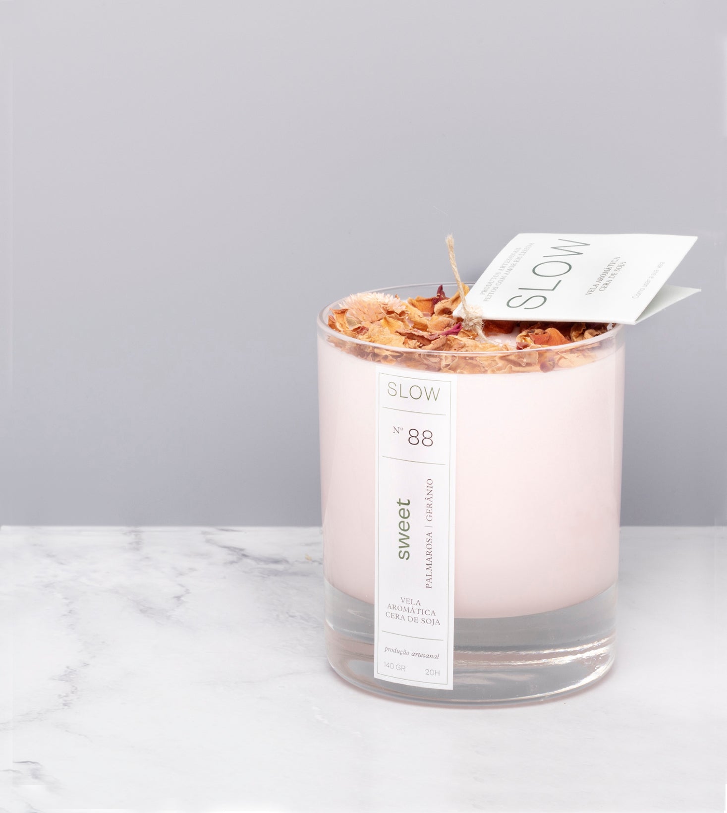 Uma vela de palmarosa e gerânio apresenta uma mistura deliciosa e harmoniosa de dois aromas florais, cada um com suas características únicas. O aroma resultante é uma fragrância equilibrada, levemente rosada e herbácea: